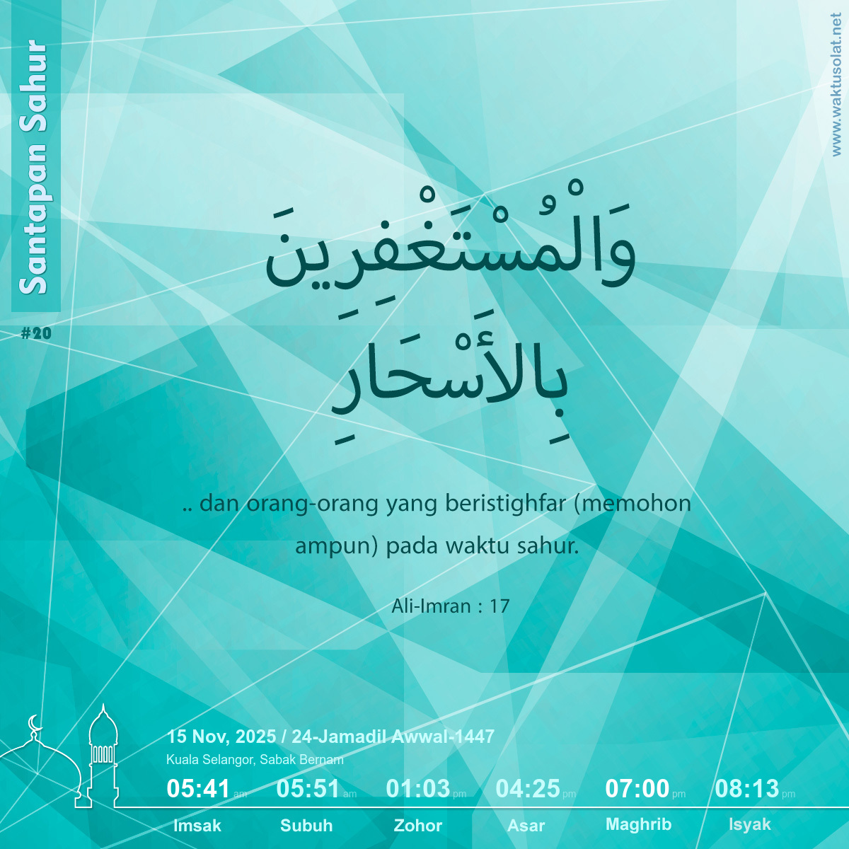 Masa: 8.00 Pagi hingga 1.00 Petang